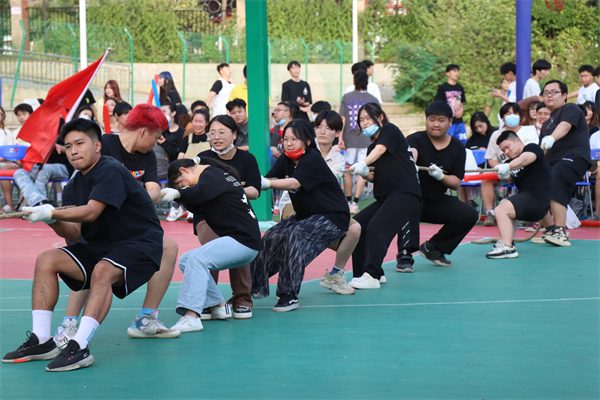 拔河比赛决赛在食品营养与卫生2001班与软件工程专升本2102班之间进行,两队实力不俗,队员们一上场立即点燃现场气氛。双方队员摩拳擦掌,势必拿下决赛冠军。一声哨响,比赛开始! 只见队员们身体向后倾斜,使出浑身力气,拼命拉住绳索。“1秒,2秒,3秒”经过短暂地僵持胶着,绳索中央的红色绸带逐渐向软件工程专升本2102班偏移,“10厘米,20厘米,30厘米……”再一声哨响,软件工程专升本2102班拿下首局。易地再战,软件工程专升本2102班发挥稳定,以2:0的比分赢得拔河比赛冠军。