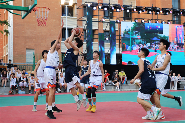 篮球赛激烈比拼现场。汤昊霖 段雨萱 易雨竹 摄