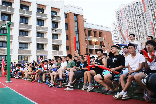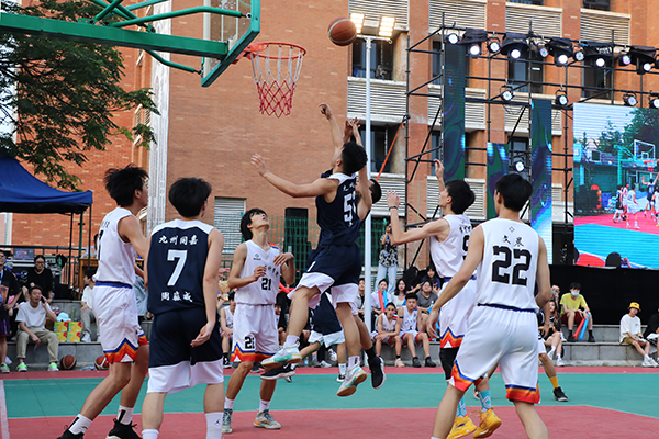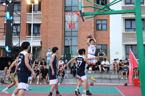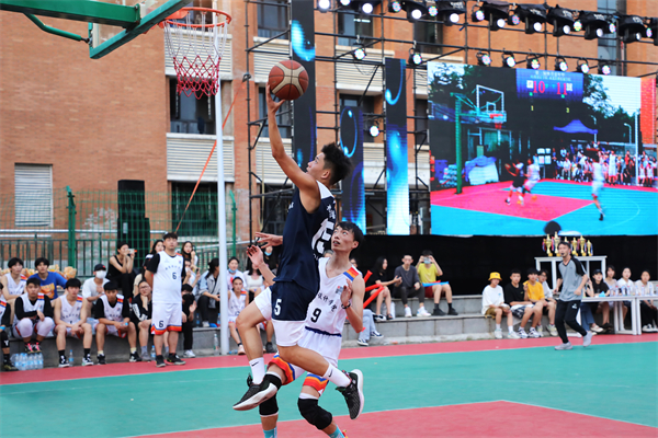 男子篮球决赛则在时尚设计学院和成龙影视传媒学院间展开。刚开赛,成龙影视传媒学院7号球员率先拿下2分,队员们被他的猛烈攻势所感染,配合默契,展开了连续抢断、进攻、防守,动作帅气利落,打出了一波6:0的小高潮。