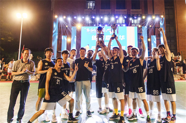 最后一节,双方队伍为了最后的胜利拼尽全力,两队队员你争我夺,潇洒的过人技术让对方眼花缭乱,时尚设计学院队员一个虎跳、转身三步上篮,成龙传媒影视学院21队员以高难度拉杆上篮拿下三分球……最终,成龙传媒影视学院以67:56的比分优势摘得男篮决赛冠军。