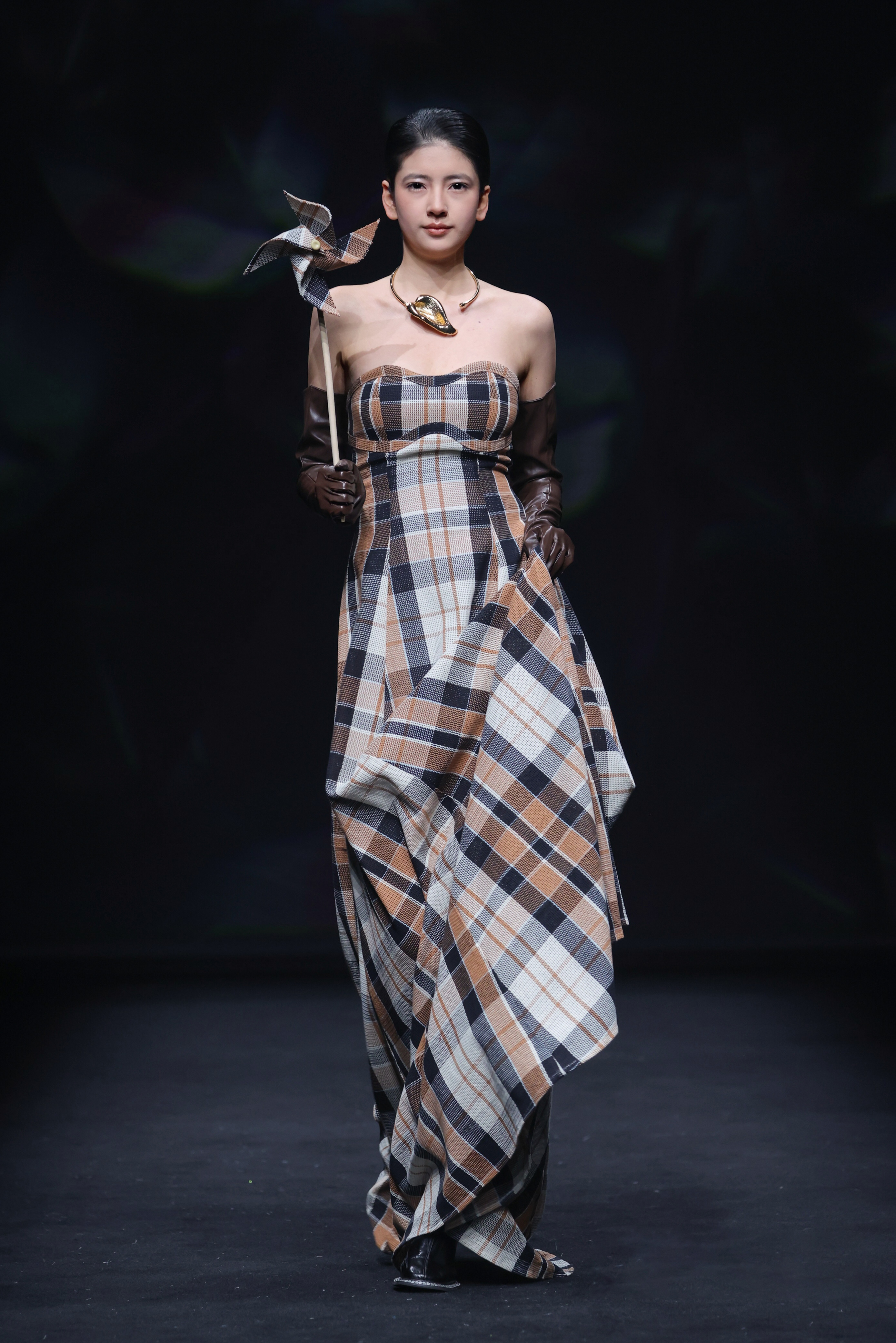 “本季系列以黄金分割点作为裁剪标准,深度融合人体工程学与曼妙曲线,在追求高级格调的同时,尤为注重服装的可穿着性与市场适配度。”包蕾介绍道,这种“既要颜值,也要实穿”的理念,正是学校服装设计专业始终秉持的教学导向,该专业不仅着重培育学生卓越的艺术表达能力,更致力于让学生具备精准对接产业需求、有效回应市场变化的综合素养。