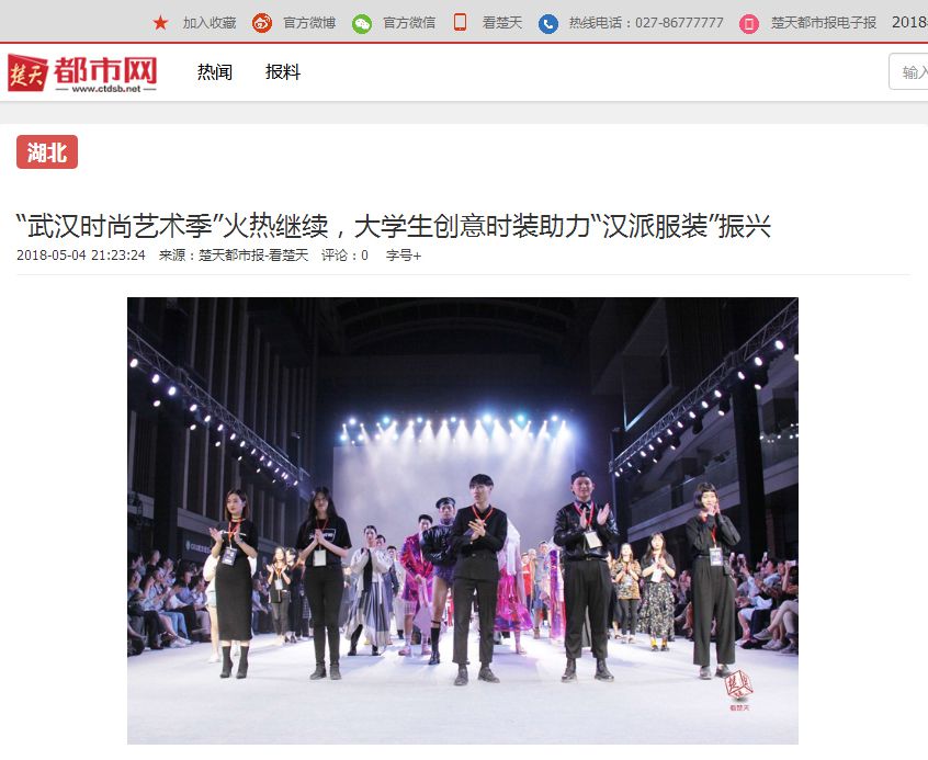 楚天都市报5月4日讯(记者徐啸寒 通讯员周惠明 徐燕 刘恒)5月3日晚,在武汉市江汉经济开发区红T时尚创意街区举行的“2018武汉时尚艺术季”上,best365中国官方网站67套毕业生时装设计作品惊艳亮相,新奇的配饰、大胆的裁剪、独立创新的设计,让台下观众直呼精彩。