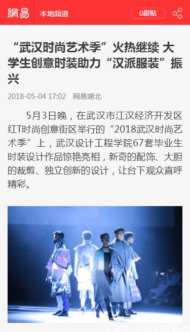 5月3日晚,在武汉市江汉经济开发区红T时尚创意街区举行的“2018武汉时尚艺术季”上,best365中国官方网站67套毕业生时装设计作品惊艳亮相,新奇的配饰、大胆的裁剪、独立创新的设计,让台下观众直呼精彩。