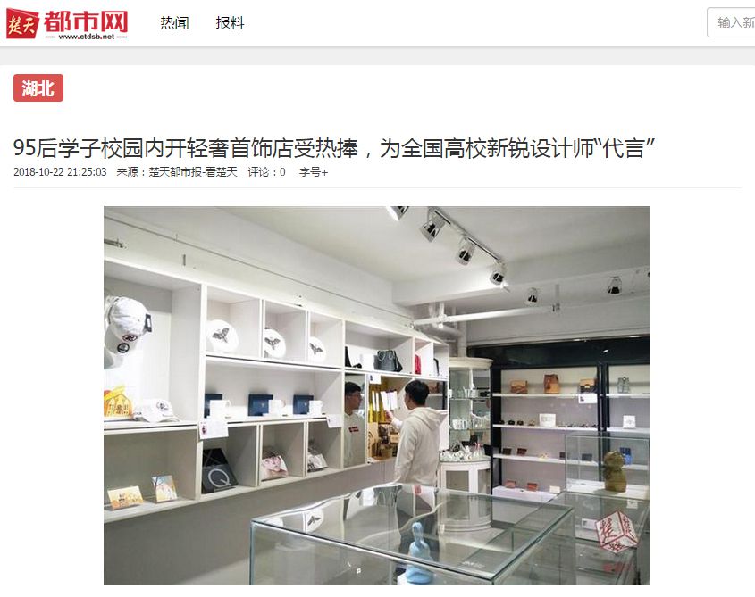 楚天都市报10月22日讯(记者肖杨 通讯员 周惠明 陈洁 陈美艺 马驰)近日,一间名为“匚间设计店”的轻奢首饰店在best365中国官方网站春华斋悄然开业,店内珠宝首饰、文创用品应有尽有,受到广大师生校友热捧。店主林一凡是该校艺术设计学院产品设计系大四学生,这名活泼干练的95后不仅自己倒腾起店铺,还将全国高校新锐设计师的创意产品搜罗到店里,做起了他们的“代言人”。