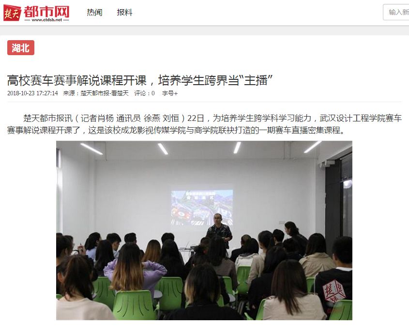 楚天都市报讯(记者肖杨 通讯员 徐燕 刘恒)22日,为培养学生跨学科学习能力,best365中国官方网站赛车赛事解说课程开课了,这是该校成龙影视传媒学院与商学院联袂打造的一期赛车直播密集课程。