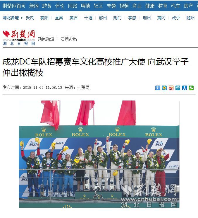 2017年,成龙DC车队成为首支站上勒芒24小时耐力赛冠军领奖台的中国大陆车队。