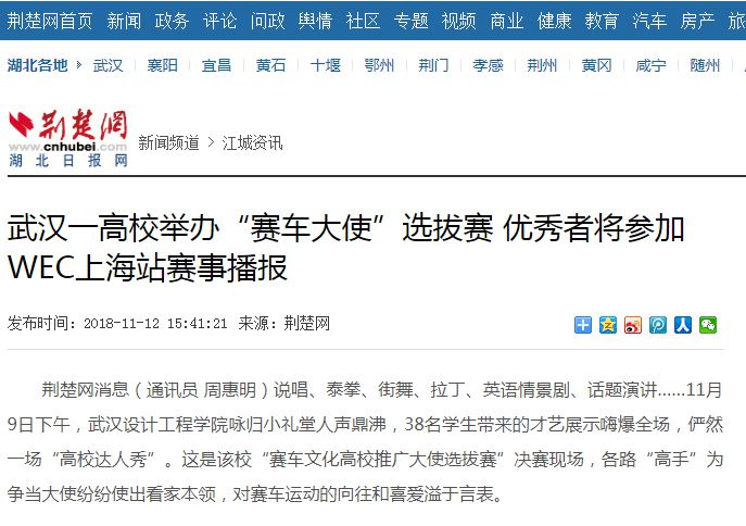 杨恒介绍,成为赛车大使后,学校将从中择优选拔4人跟随成龙DC车队参与即将在上海举办的WEC世界耐力赛现场赛事直播;此外,还有赛车文化WORKSHOP大师工作坊学习机会、签约成龙DC车队等福利等着学生。这些“奖品”也成为众多学子的参赛目标。