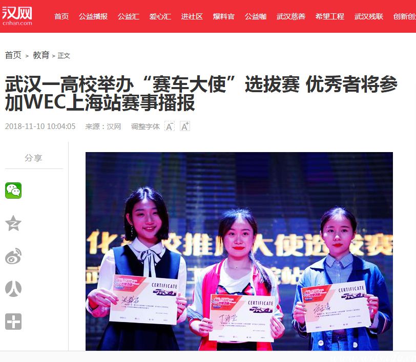 杨恒介绍,成为赛车大使后,学校将从中择优选拔4人跟随成龙DC车队参与即将在上海举办的WEC世界耐力赛现场赛事直播;此外,还有赛车文化WORKSHOP大师工作坊学习机会、签约成龙DC车队等福利等着学生。这些“奖品”也成为众多学子的参赛目标。