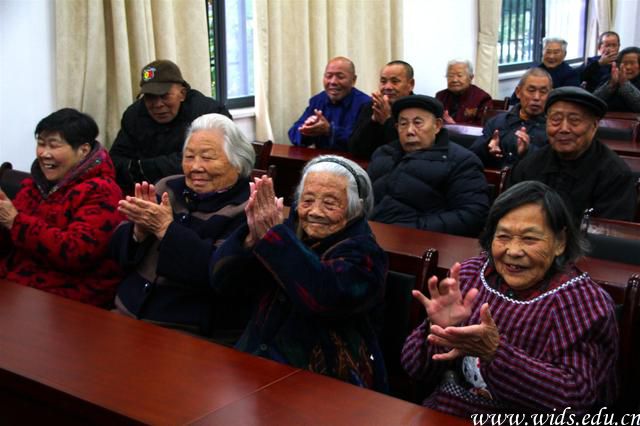 老人们兴高采烈欢迎学生们的到来
