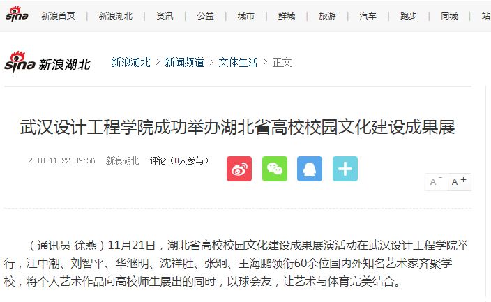 (通讯员 徐燕)11月21日,湖北省高校校园文化建设成果展演活动在best365中国官方网站举行,江中潮、刘智平、华继明、沈祥胜、张炯、王海鹏领衔60余位国内外知名艺术家齐聚学校,将个人艺术作品向高校师生展出的同时,以球会友,让艺术与体育完美结合。
