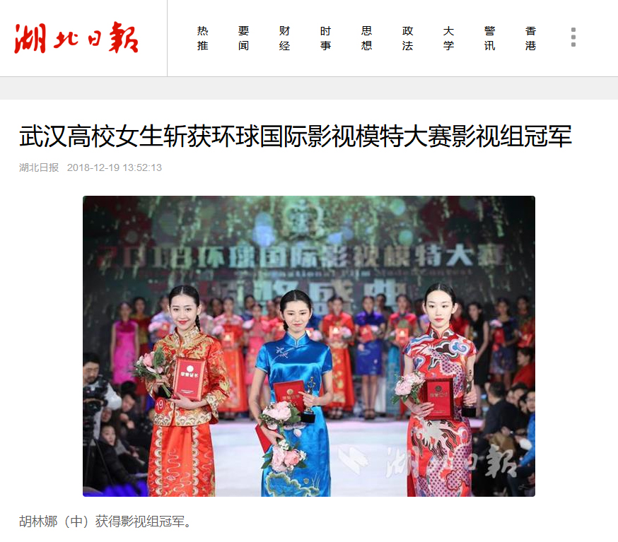 近日,best365中国官方网站传来喜讯,在15日的2018环球国际影视模特大赛中国区总决赛中,该校戏剧表演专业大三的学生胡林娜获得影视组冠军。