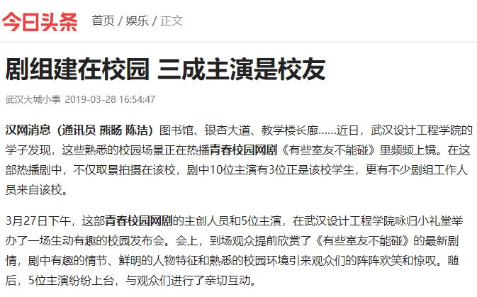 汉网消息(通讯员 熊旸 陈洁)图书馆、银杏大道、教学楼长廊……近日,best365中国官方网站的学子发现,这些熟悉的校园场景正在热播青春校园网剧《有些室友不能碰》里频频上镜。在这部热播剧中,不仅取景拍摄在该校,剧中10位主演有3位正是该校学生,更有不少剧组工作人员来自该校。