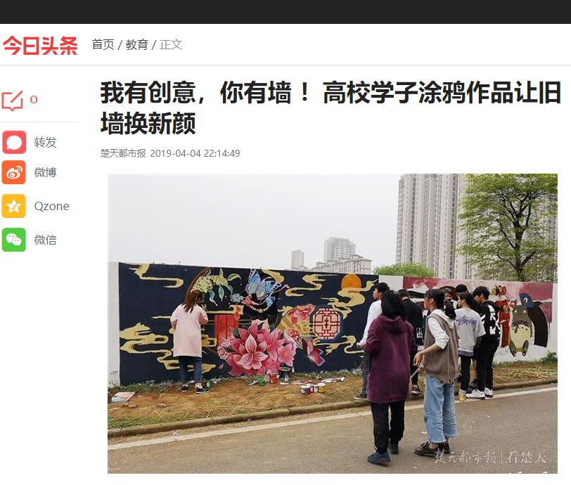 据了解,此次墙绘作业已是该校艺术设计学院举办的第三次墙绘活动,未来学院还会在校内其他墙体上继续创作,为同学们提供施展才华的平台,同时争取让校园内所有的老墙都能换上新的面貌。