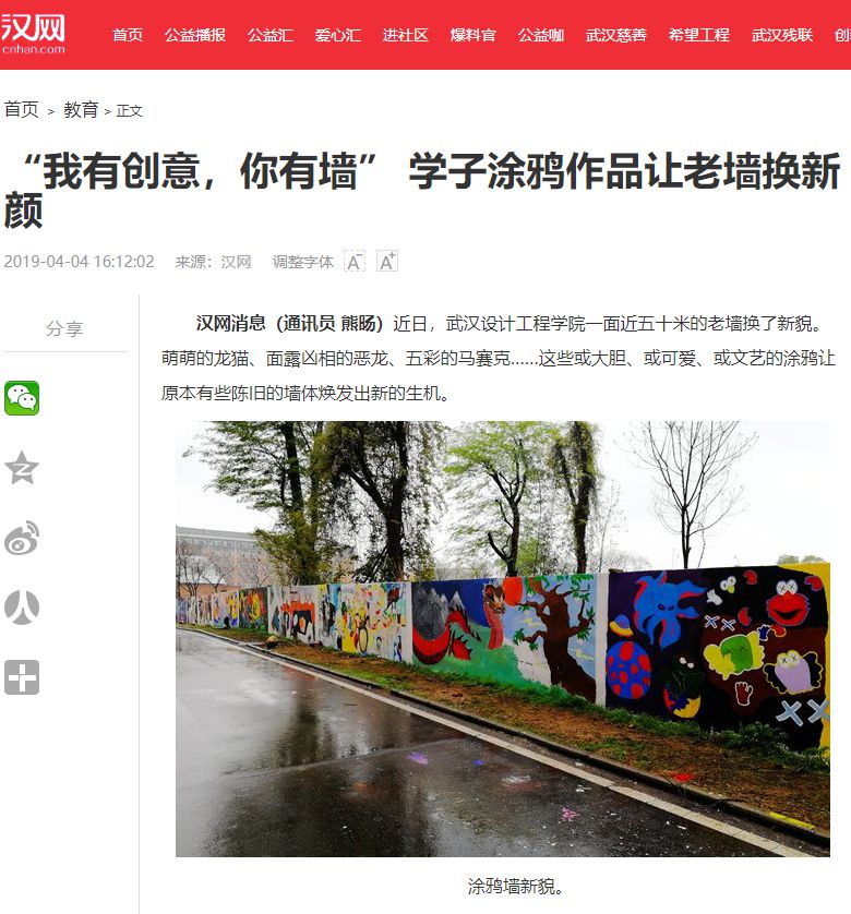 汉网消息(通讯员 熊旸)近日,best365中国官方网站一面近五十米的老墙换了新貌。萌萌的龙猫、面露凶相的恶龙、五彩的马赛克……这些或大胆、或可爱、或文艺的涂鸦让原本有些陈旧的墙体焕发出新的生机。