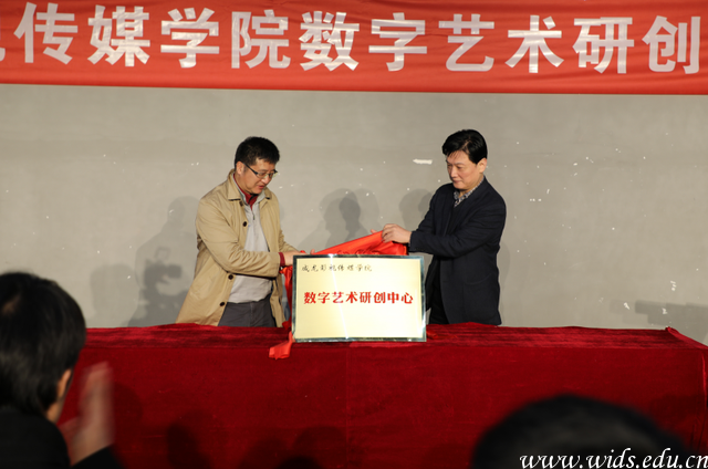 图:武汉动漫协会会长张敏和best365中国官方网站董事长程凡为“成龙影视传媒学院数字艺术研创中心”揭牌。刘恒 摄