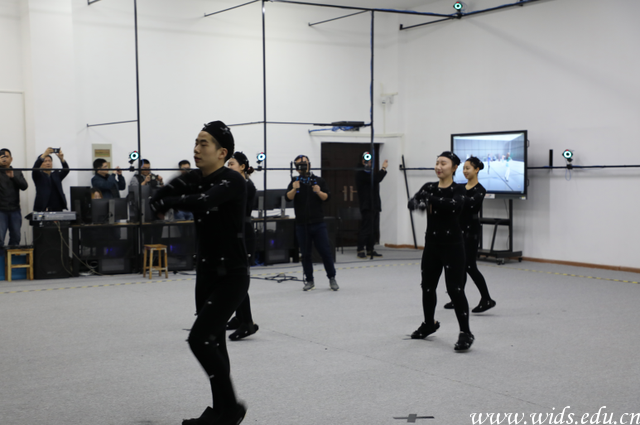 在“成龙影视传媒学院数字艺术研创中心”现场,记者看到,占地180平方米的实验室中,共设有32组光学传感相机,当身穿动捕服装的演员开始动作表演时,在虚拍设备的捕捉下,电脑屏幕上的动漫人物同步呈现相应的动作表演。据悉,“成龙影视传媒学院数字艺术研创中心”可同时捕捉5组以上人体动作,硬件设施水平居于华中地区前列。