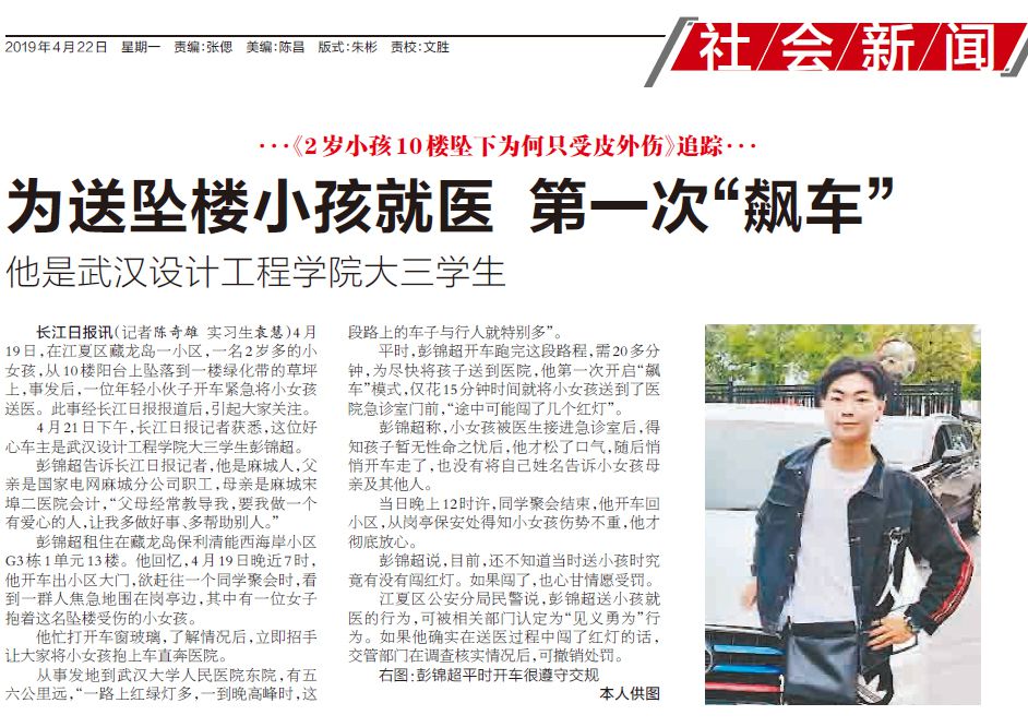 4月21日下午,长江日报记者获悉,这位好心车主是武汉设计工程学院大三学生彭锦超。