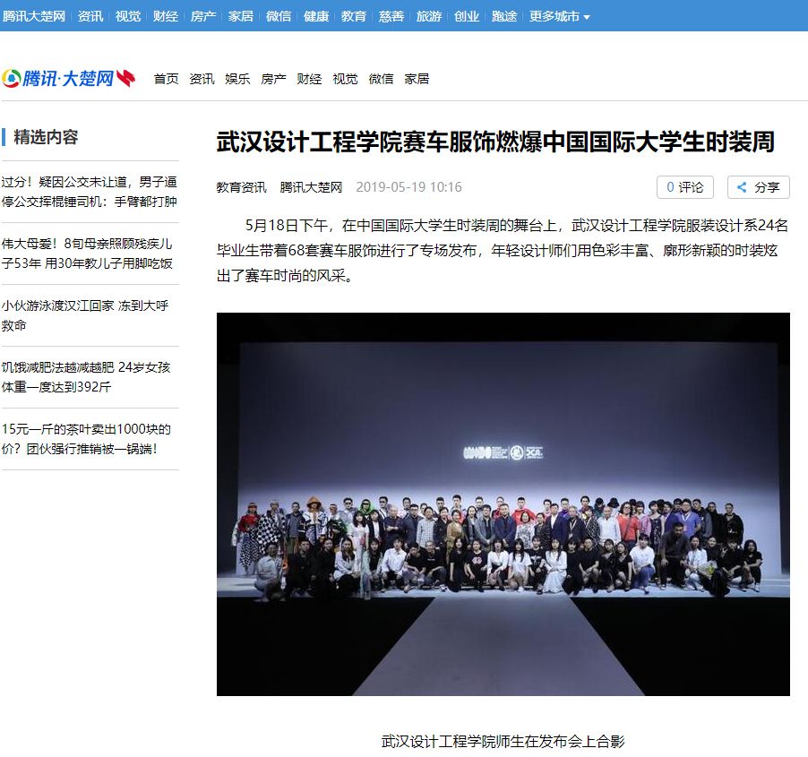 付雪介绍,自去年10月起,学校就启动了毕业设计工作,经过了灵感整理、设计提案、创意成衣等环节,在此期间部分学生还赴上海进行了为期一周的赛车体验和调研,耗时半年这批作品才得以在T台上展现。目前,这批时装也是收获了累累硕果,毕业生寇小桐入围2019“中华杯•太酷”大学生毕业季服装设计大赛30强;黄文惠获第八届“石狮杯”全国高校毕业生服装设计大赛优秀奖;程瑶入围了第24届中国时装设计新人奖;在 4月举行的武汉时尚艺术季上,学生作品更是一举获得新锐奖、市场奖、男装奖等七项大奖。