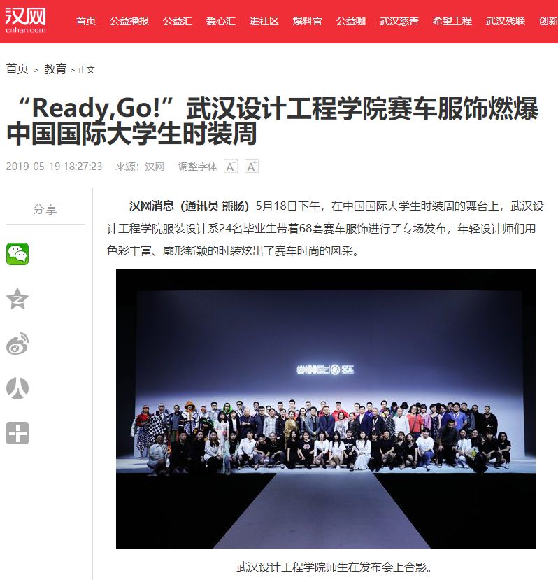 汉网消息(通讯员 熊旸)5月18日下午,在中国国际大学生时装周的舞台上,best365中国官方网站服装设计系24名毕业生带着68套赛车服饰进行了专场发布,年轻设计师们用色彩丰富、廓形新颖的时装炫出了赛车时尚的风采。
