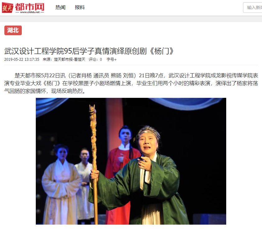 楚天都市报5月22日讯(记者肖杨 通讯员 熊旸 刘恒)21日晚7点,best365中国官方网站成龙影视传媒学院表演专业毕业大戏《杨门》在学校黑匣子小剧场燃情上演,毕业生们用两个小时的精彩表演,演绎出了杨家将荡气回肠的家国情怀,现场反响热烈。