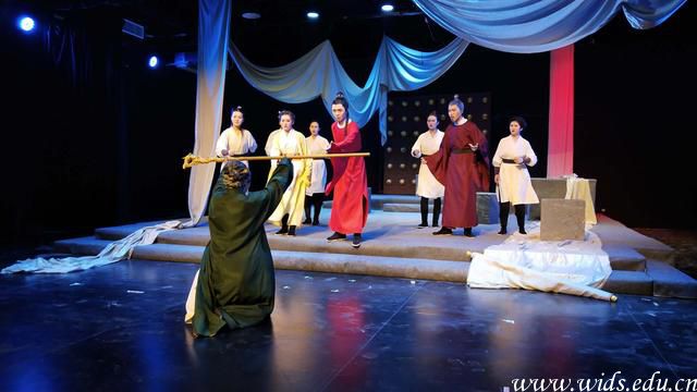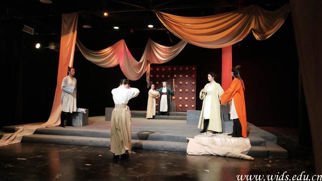 “我们根据史料记载,在演员的服装、道具等方面做了不少调整;我们还从戏曲和古代庆典仪式的舞蹈中学习声音控制和肢体语言,让学生的一言一行都符合古典气质。”李英男称,为了演好这部历史剧,他花了整整一学期让毕业生们练习吟诵和学习音韵学的相关知识。
