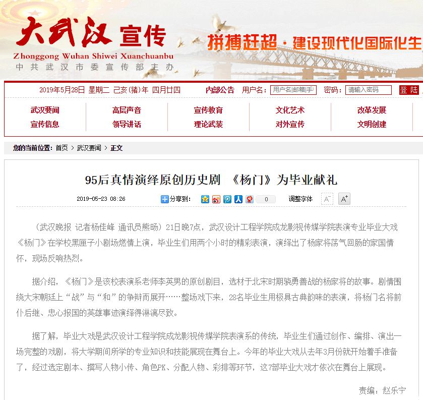 【长江日报】95后真情演绎原创历史剧《杨门》为毕业献礼