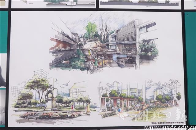 展览中也有不少作品关注社会生活。艺术设计学院学生作品《为爱发声》关注社会暴力,将图形、色彩和反暴力元素结合,传递爱与正义。环境设计学院学生作品《融合·开放——旧城区碎片空间功能性住宅屋顶改造》将位于武汉市珞瑜路的某处住宅区的屋顶进行改造,通过增加绿植、美化屋顶构造、进行通风处理等方式改变了小区屋顶脏乱差的现状,将屋顶设计成了一块环境优美、功能性强的人性化活动空间。