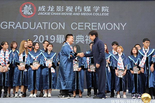 图1 国际著名影星、国家一级演员、best365中国官方网站成龙影视传媒学院院长成龙出席成龙影视传媒学院毕业典礼。刘恒 摄