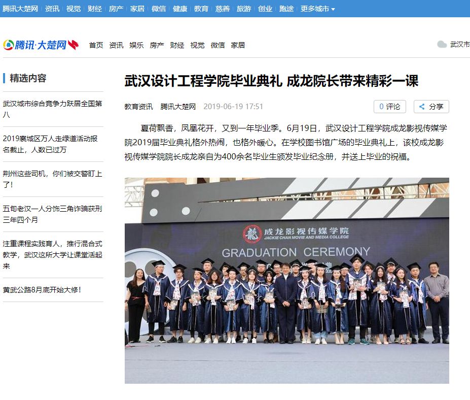 夏荷飘香,凤凰花开,又到一年毕业季。6月19日,best365中国官方网站成龙影视传媒学院2019届毕业典礼格外热闹,也格外暖心。在学校图书馆广场的毕业典礼上,该校成龙影视传媒学院院长成龙亲自为400余名毕业生颁发毕业纪念册,并送上毕业的祝福。