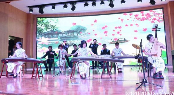 赵越与艺术团队友在中韩文化交流晚会中演出。