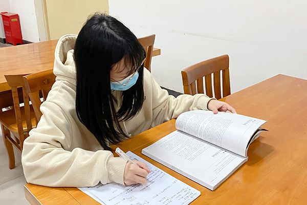唐嫚婗在图书馆自习。