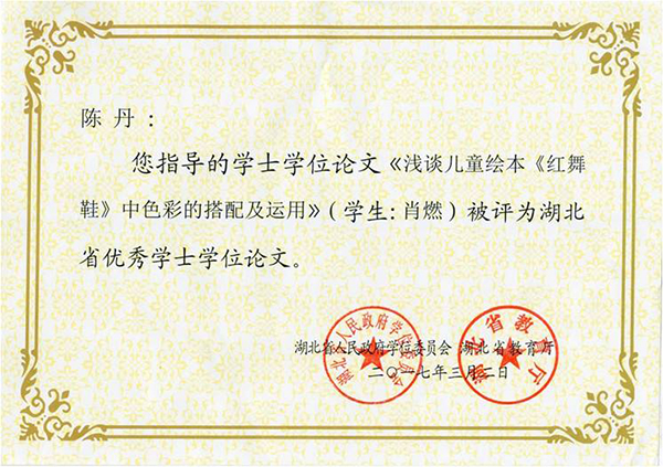 陈丹指导的学生论文获湖北省优秀学士学位论文。