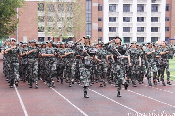 “首长好!”、“为人民服务!”……各连队在接受检阅时口号声响彻整个校园,一身军装的“千禧”新生们一排排、一列列都挺直了身躯,在烈日当空下纹丝不动的站立着军姿,精神饱满,斗志昂扬,彰显着军人风采。