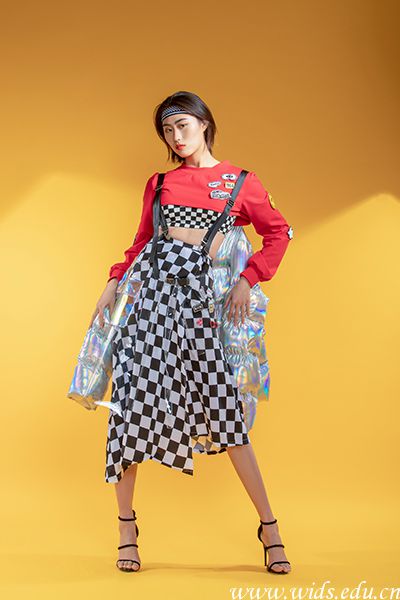 设计说明:以赛车运动为主题,联结赛车产业、汽车产业和时尚产业,进行服装设计。赛车文化越来越被大众熟知,许多电影以及小说漫画中都有着赛车的影子。在国外燃爆T台的赛车服元素,很多设计师们将赛车场上各种logo做成有趣的slogan作为一种时尚元素融入到类似赛车服的皮质夹克上或时尚运动服装上,给原本单调的设计增添了趣味性,凸显前卫感。同时在设计图案上我首先想到的就是最具代表性元素黑白格旗子,所以本系列作品服装色彩运用了绚丽耀眼的新潮流色调,红色、及黑白的经典搭配;在图案设计上运用了赛车、赛场、机械、科技、运动等灵感来源;在服装上主要运用印花技术,并且在面料上更加注重特殊材质的运用,如轻盈面料,TPU材质和特殊性面料,在体现材质表现的同时寻求异于常规的创造性表现;廓形结构无论内外更加强调运动功能和美观的结合,强调剪裁的设计感。在服装中只有恰到好处的使用,才能起到画龙点睛、锦上添花的设计效果。