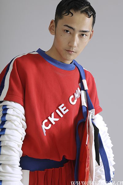 设计说明:此系列服装灵感来源于风驰电掣的赛场。服装主要以红白两色为主色调,给人视觉上带来一种简洁舒服的感观。服装多处运用了拼接的手法,简约的同时也不失细节。