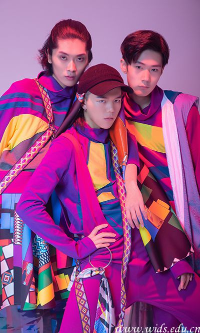 作品以赛车防护服为设计灵感,整体偏中性。紫色是赛场上旗帜的颜色,所以紫色也成为本次服装的主色调。细节方面结合了传统民族风,用夸张图案来丰富赛车服的整体造型,这种艺术性的设计也充分体现了设计师的性格——个性张扬,追求与众不同。正如作品的主题是挂帅出征,是载满荣誉征途的开始,也是赛场拼搏前对自己最好的鼓励。勇往直前的赛车王,挂帅出征,满誉归乡!