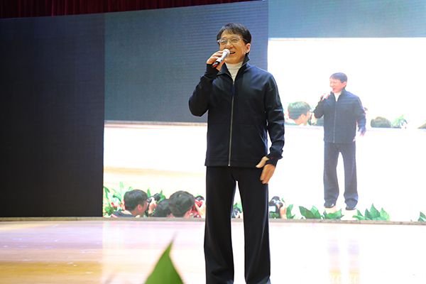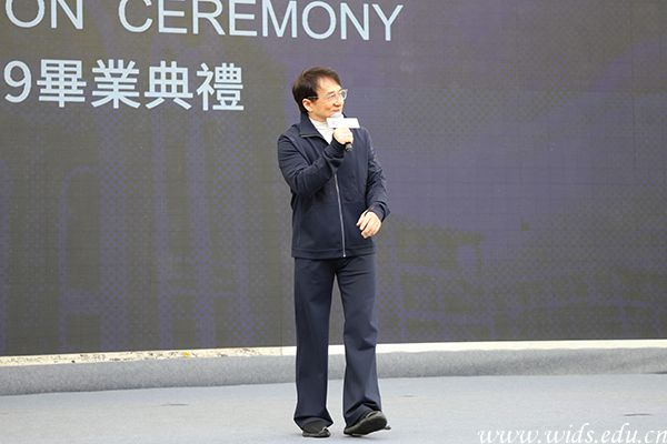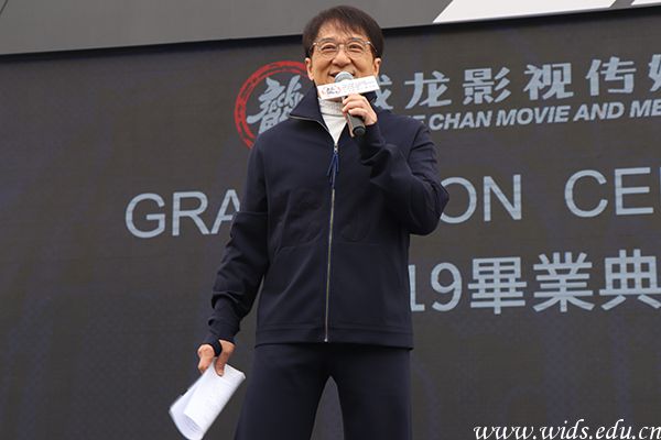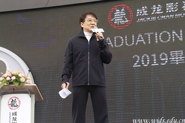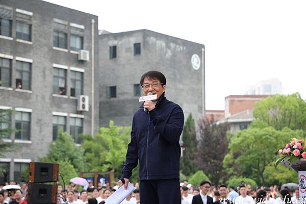 11点,成龙院长来到学校毕业典礼现场,为现场1500余名毕业生送上毕业祝福。