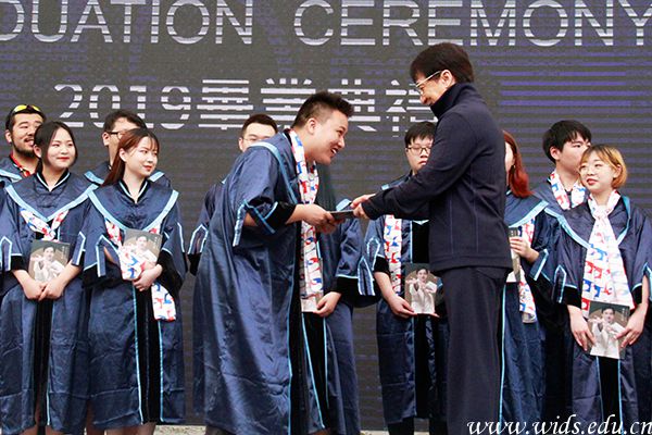 成龙院长为毕业生颁发纪念册。