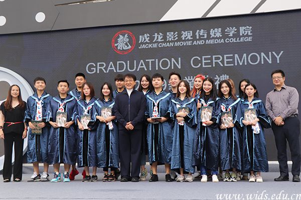 上午9点半,成龙影视传媒学院毕业典礼在图书馆广场举行,成龙影视传媒学院学子上台分享他们在成龙院长剧组实习时的点滴故事。