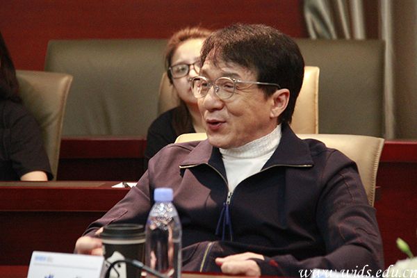 成龙在会上表示,非常愿意把剧组中的服装、舞台、剧务等工作交给学生们去实践完成。