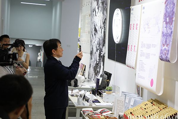 下午两点半,成龙院长来到美术馆参观同学们的毕业设计作品。
