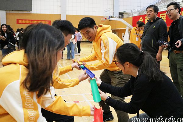 作为今年新增的一轮项目,珠行万里更有其独特魅力。参赛人员需要手持橡胶软管,以接力的形式将小球送到终点。这项比赛同样采用计时制,用时短者获胜。来自艺术设计学院的胡舒娟老师表示:“珠行万里这项运动十分考验成员之间的配合度,稍不留神球就会掉下来。不过这项运动给我们提供了放松心情的机会,更可以增进彼此之间的感情,毕竟大家平时都忙于工作。”