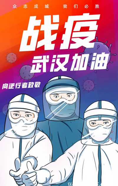 设计说明:这张海报是为了表现面对疫情,我们无所畏惧,勇往直前,一起共同抗疫的场景。选取以一线医护人员、病毒专家、军人等作为海报的背景主题,借此展示出一线人员面对疫情迎难而上,不只为小家,更为大家的精神。这次疫情不只是湖北的,也是我们全中国人民的事情。众志成城,中国必胜!加油武汉,我们必胜!