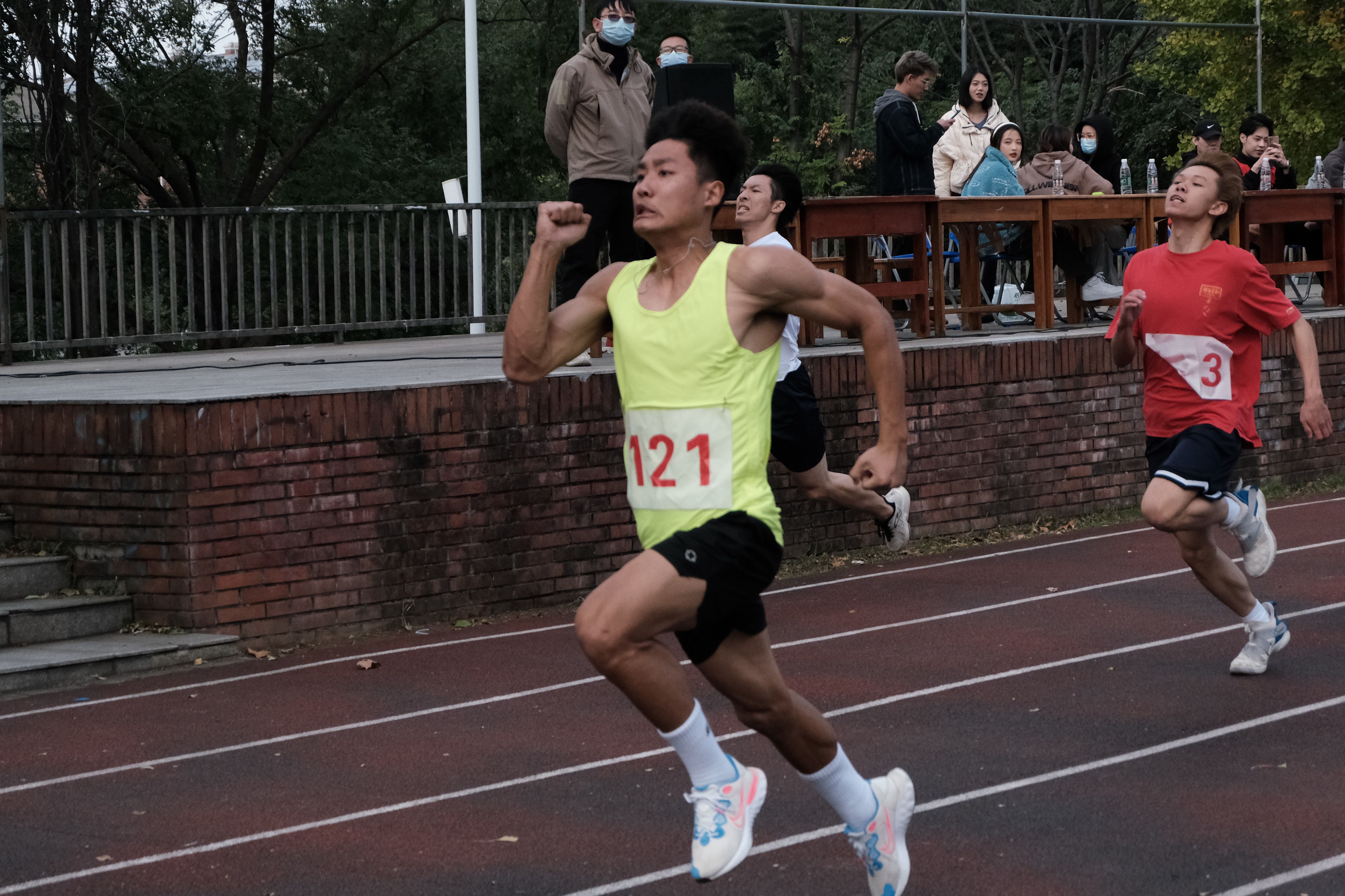 比赛开始前,运动员站在起跑线上舒展筋骨,试跑热身,观众则站在一侧,静盼冠军花落谁家。“各就各位,预备!跑!”哨声一响,运动员像离弦之箭冲出起跑线,跑道上扬起阵阵微尘,挥洒的汗水在阳光下折射出点点星光,只见运动员们双手前后摆动的幅度、频率都一改往常,脚下像装了马达一样,健步如飞。在激烈的角逐后,成龙影视传媒学院的段雨秀获得冠军,亚军由商学院的田丽摘得,季军由信息工程学院的乐绪超收入囊中。
