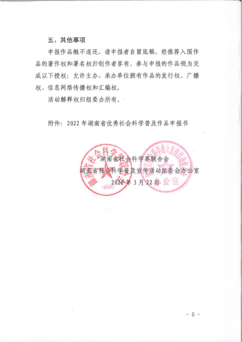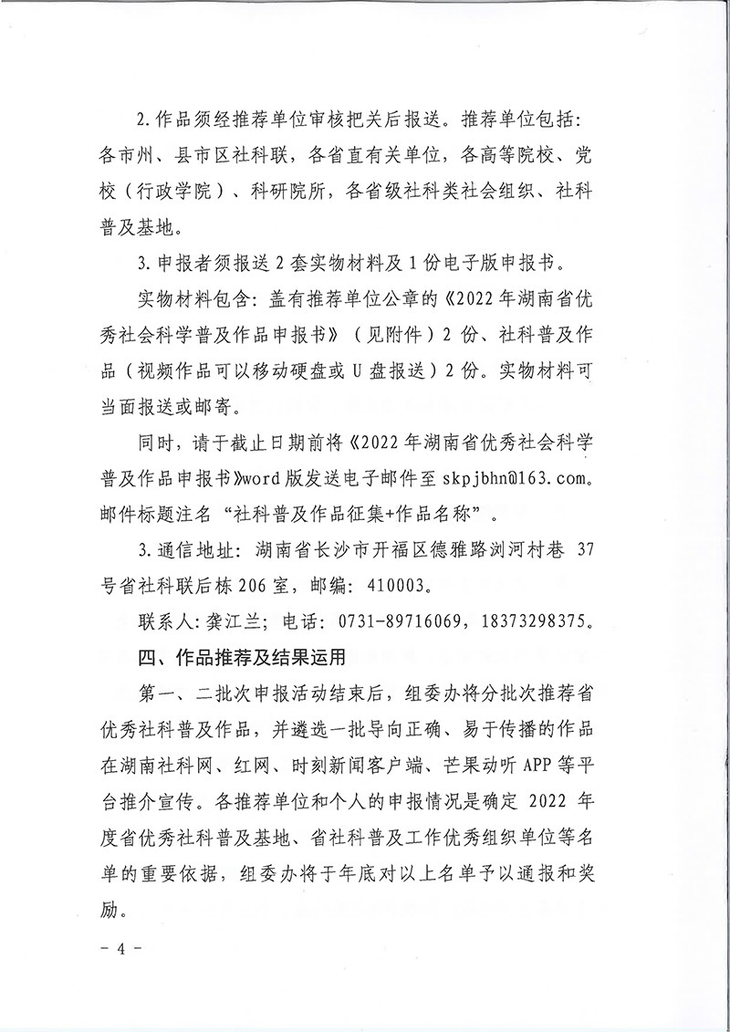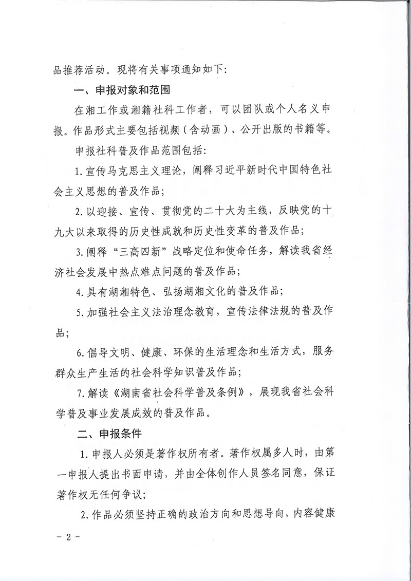 关于推荐2022年湖南省优秀社会科学普及作品的通知