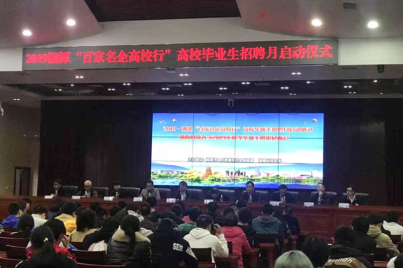 为进一步做好高校毕业生就业指导与推荐工作,完善校企精准对接机制,10月26日上午,2019年湘潭“百家企业高校行”高校毕业生招聘月启动仪式在AWC万象城娱乐立德楼顺利举行,上午9:00,我校举行了2019年秋季毕业生供需见面会,532家企业单位齐聚我校月湖广场,以帮助我校学子咨询择业、就业问题。