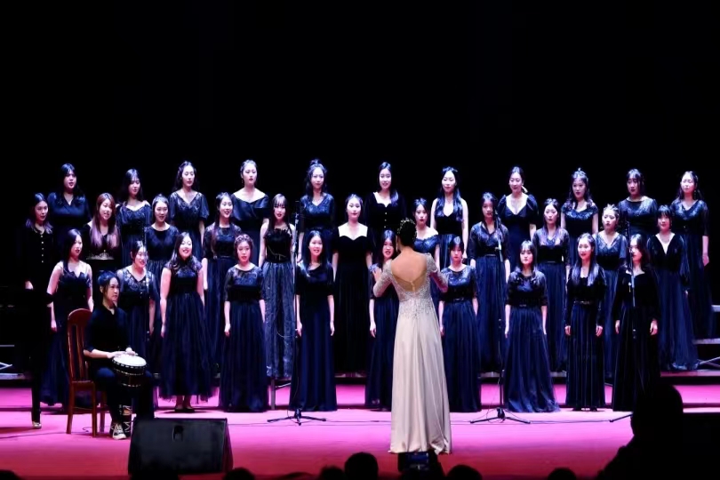 “我祈祷拥有一颗透明的心灵和会流泪的眼睛,给我再去相信的勇气……”清澈空灵的童声从祁东县启航学校的一间教室传出,这是我校“心与馨”志愿支教服务队在组织乡村儿童合唱团排练歌曲《夜空中最亮的星》。这首歌穿越1523公里,从湖南一隅山村一路飘向北京,并于2020年11月登上国家大剧院的舞台,向全国人民汇报展示湖南精准扶贫的生动成效。而这支合唱团的领唱,正是孩子们口中亲切的“雅婷姐姐”。