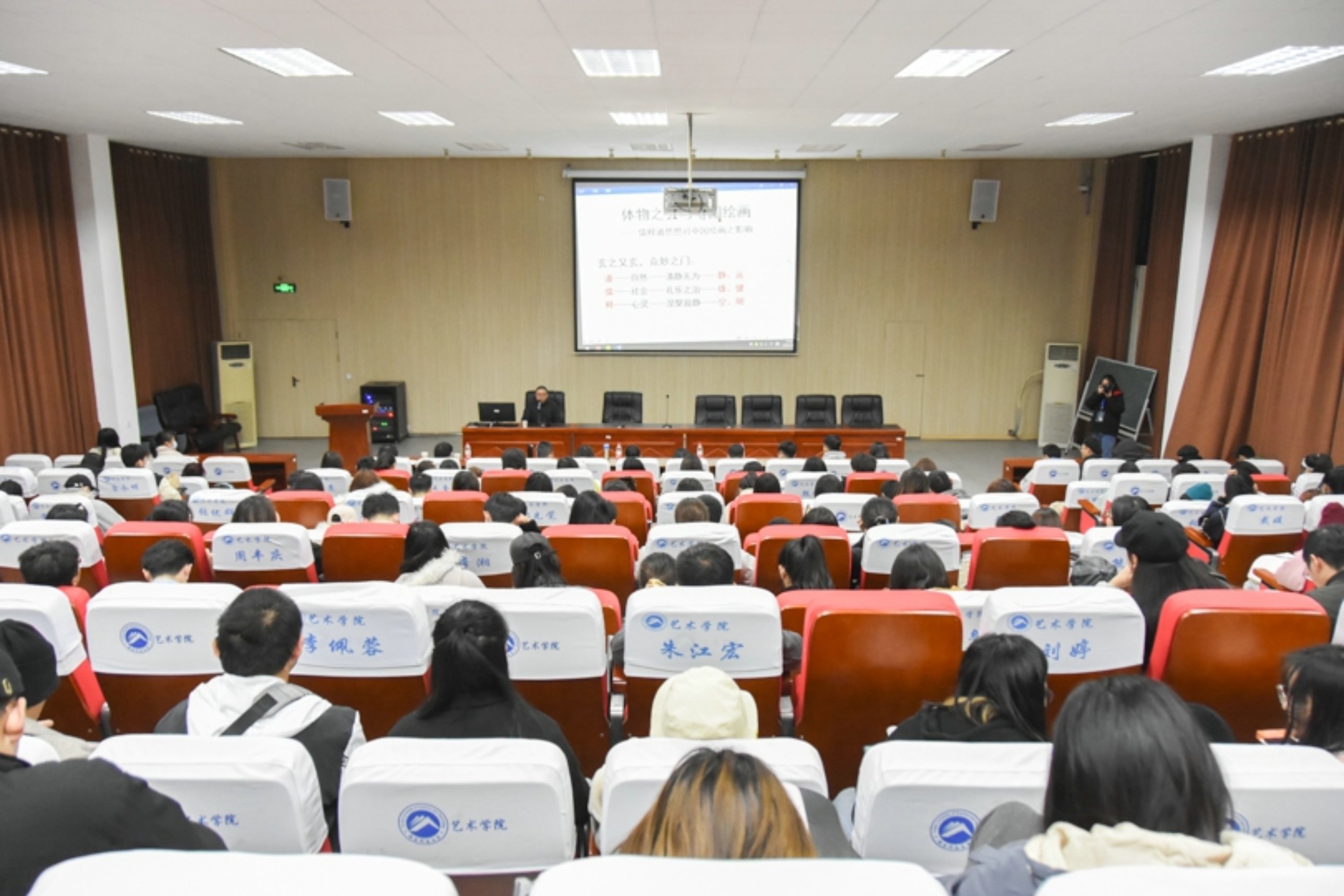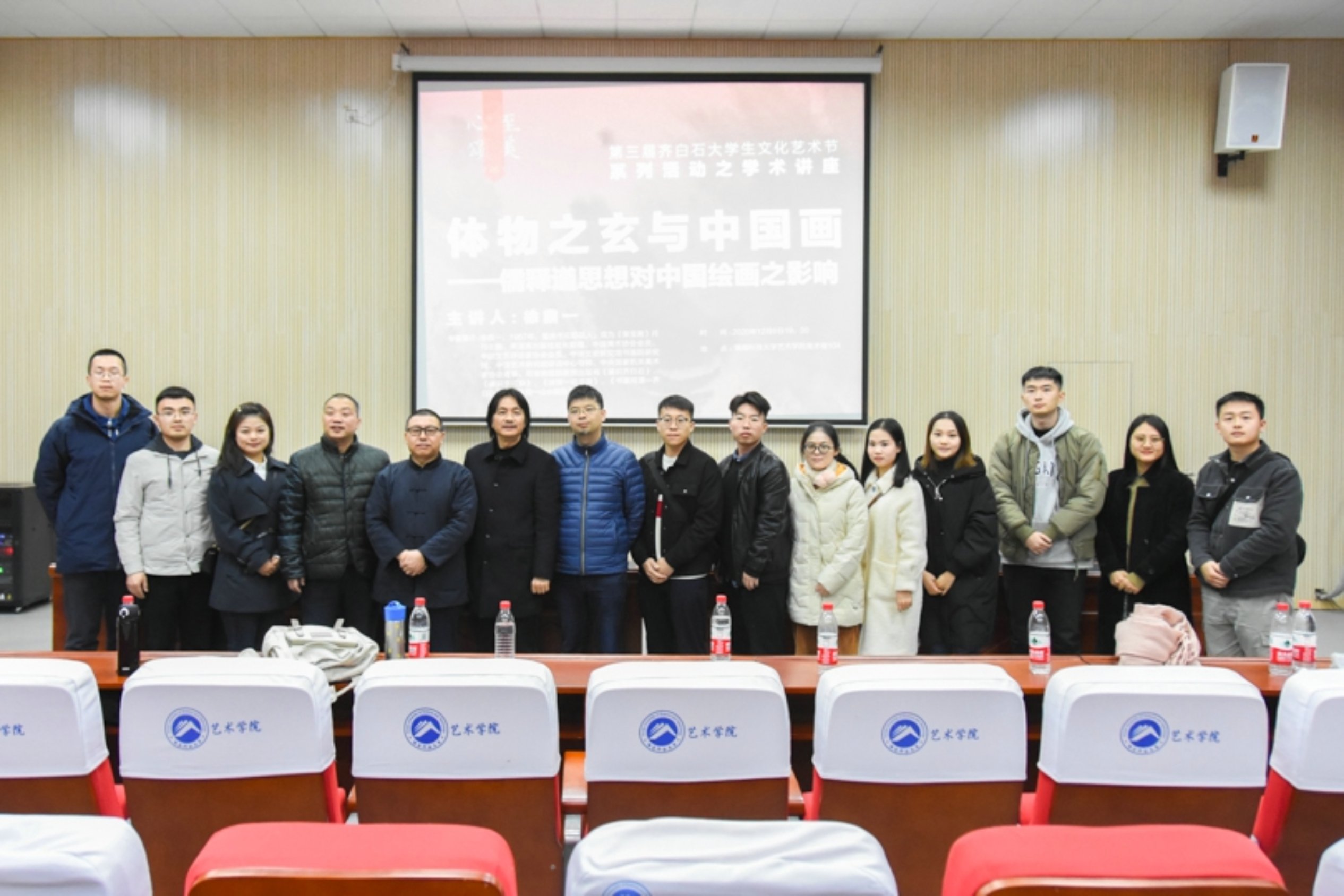 12月6日19:30,以“体物之玄与中国绘画——儒、释、道思想对中国绘画之影响”为主题的“心颂 至美”第三届齐白石大学生文化艺术节学术讲座于我校美术楼104会议室顺利举行。此次讲座由我校艺术学院院长李毅松主持,《荣宝斋》月刊主编、中国美术家协会会员徐鼎一受邀出席并担任主讲人。本次艺术节获奖代表、我校艺术学院学生到场聆听,场内座无虚席。
