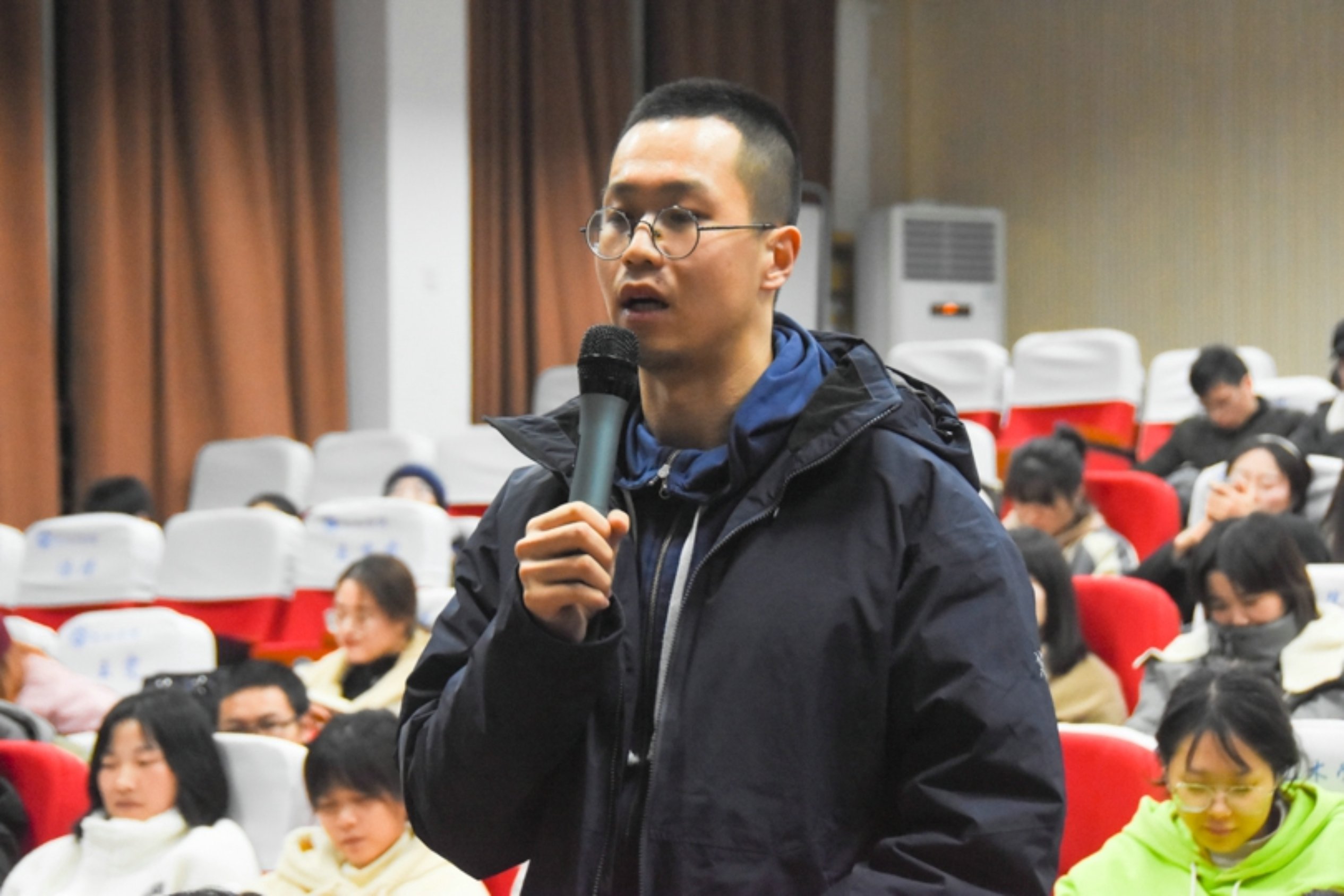 在互动环节,徐鼎一针对观众提出的有关儒、释、道思想与绘画创作结合的问题,给出了耐心且细致的解答。他引经据典,侃侃而谈,既引用先贤观点,又列举亲身经历的趣事,用通俗易懂的语言和风趣幽默的表达贴近时代、贴近生活,深深地吸引了在场学生,会议室内掌声连连。