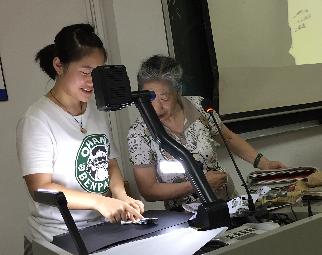 究竟这些生动的形象是如何制作而成,这些看似普通的废旧纸张又该如何被巧妙利用呢?贺老师以一张宣传单为例,首先教学生用发散思维和独特视角去观察和发现纸张图案的玄机,接着通过示范与演示,教授了基本的折叠方法和技巧,并鼓励学生运用撕、扭、折等方法尝试制作。同学们纷纷拿起纸张跃跃欲试,积极主动地向老师请教、与老师交流,而贺老师则不断地巡视指导,启发学生。在浓厚的兴趣和积极的尝试中,很多同学都成功地折叠出了趣味十足的作品,并通过投影向大家展示、解说。贺老师则一一对作品进行了点评,并肯定了同学们的想法与能力,更对学生提出了期望。